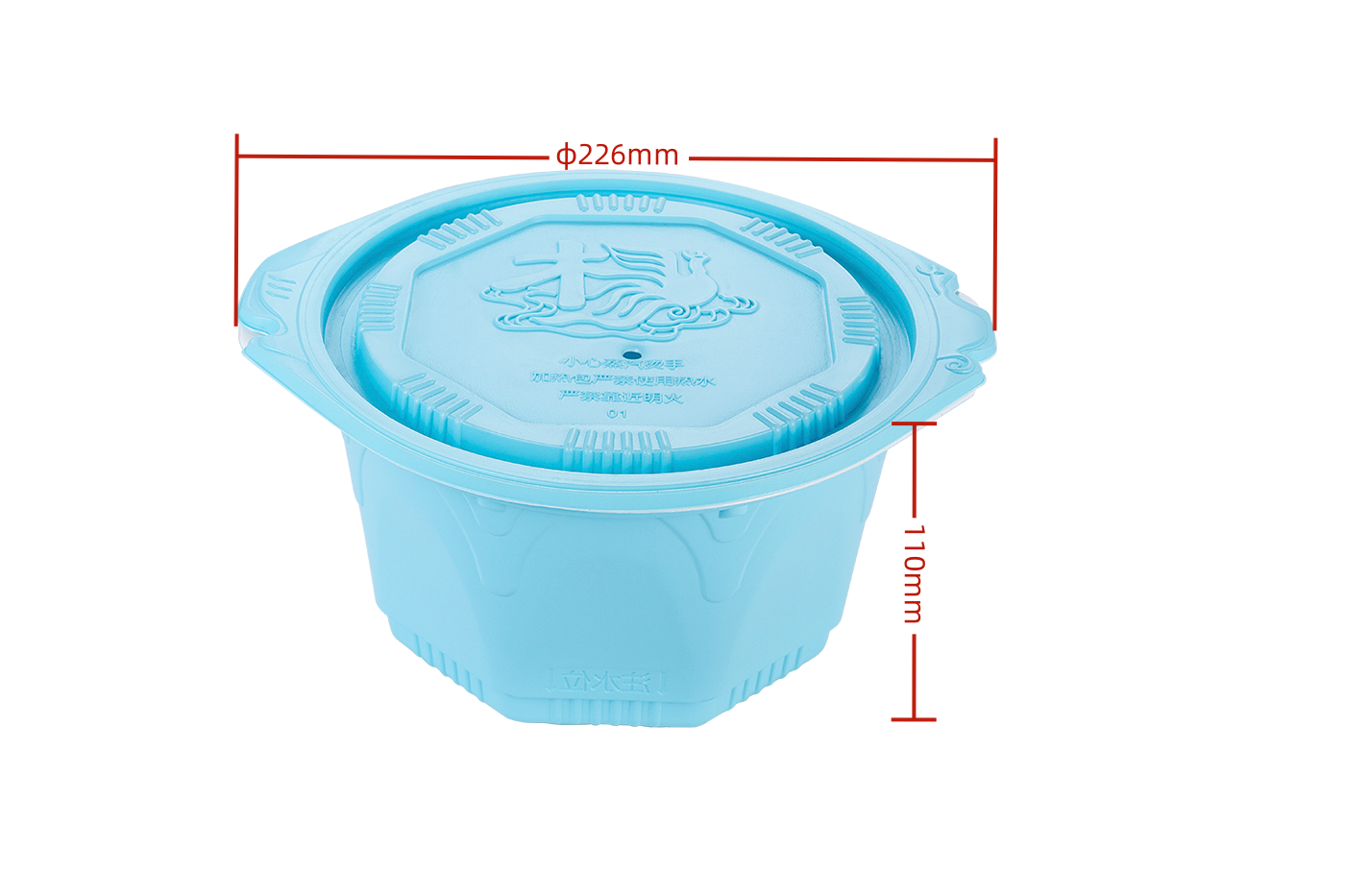 容量 :襯1100ml 底1800ml尺寸 :蓋φ228*φ197*10(耳邊)mm 襯φ180*67mm 底φ226*φ197*11mm顔色 :藍色材質 :聚丙烯采用食品級全新PP材料,耐高溫120℃,壁厚均勻光澤度好,承托力強。可微波加熱